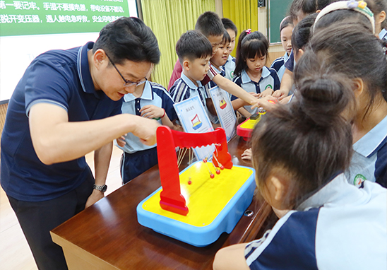 在安全使用電子、 電器大講堂環(huán)節(jié),專業(yè)人員通過(guò)講解的方式讓學(xué)生了解使用電器的理論知識(shí)。