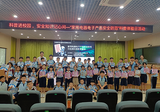 為了讓更多的青少年兒童了解到安全使用電子電器的重要性及科普知識(shí),在東莞市科學(xué)技術(shù)協(xié)會(huì)的指導(dǎo)及幫助下,廣東優(yōu)科檢測(cè)認(rèn)證有限公司于2023年5月22–26日進(jìn)入板石小學(xué)開(kāi)展科普進(jìn)校園系列之“家用電器電子產(chǎn)品安全防范”開(kāi)放與體驗(yàn)活動(dòng)。