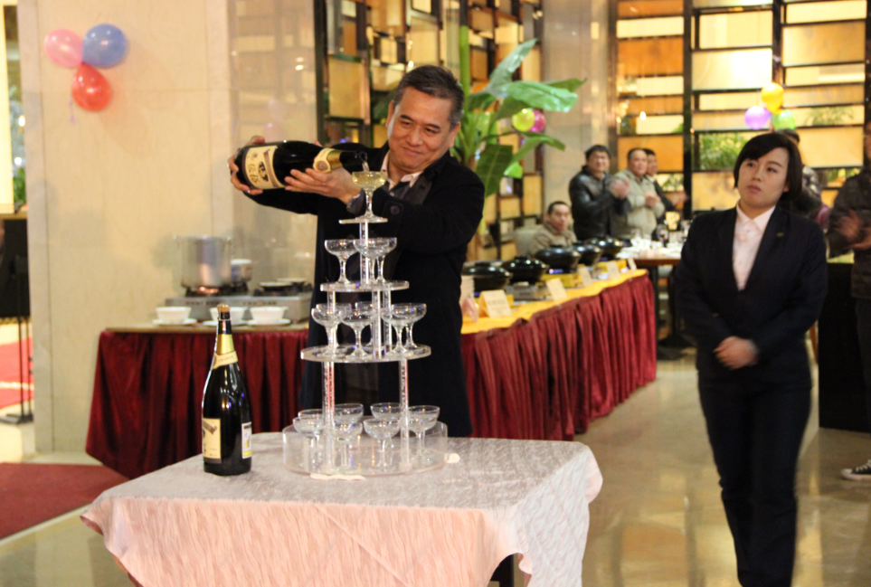 18點(diǎn)30分,年會(huì)正式開始。首先,東科集團(tuán)總經(jīng)理張玉女士致詞,和大家一起分享了董事長(zhǎng)吳亮明先生高瞻遠(yuǎn)矚,獨(dú)具慧眼,創(chuàng)建東科集團(tuán)的歷程;總結(jié)了東科集團(tuán)2015年所取得的優(yōu)異成績(jī)。同時(shí),代表集團(tuán)對(duì)所有支持集團(tuán)發(fā)展的領(lǐng)導(dǎo)和嘉賓以及全體員工的辛勤付出表示衷心的感謝,祝福東科集團(tuán)在新的征程中不斷發(fā)展壯大,再創(chuàng)輝煌。隨后,東科集團(tuán)董事長(zhǎng)吳亮明先生開香檳注入香檳塔,舉杯和現(xiàn)場(chǎng)所有嘉賓共慶年會(huì),相與祝福,祝福大家新年快樂(lè),身體健康,工作順利!祝福東科集團(tuán)興旺發(fā)達(dá)!明天更美好!