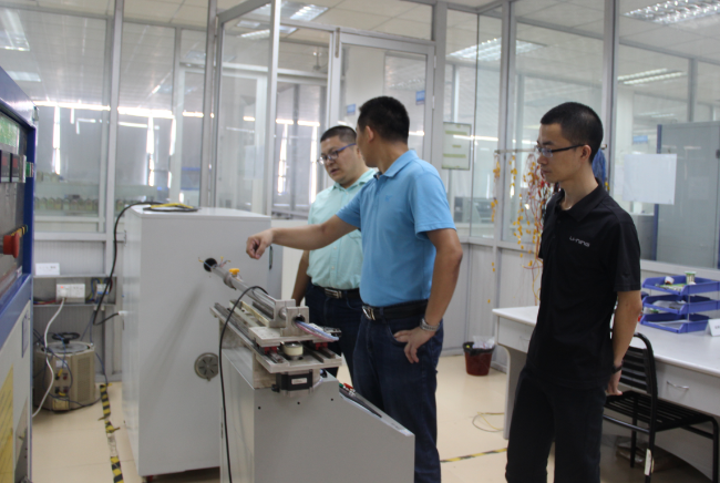 首先,廣東優(yōu)科總經(jīng)理張濤先生及技術(shù)總監(jiān)馬啟田先生對(duì)廣東優(yōu)科業(yè)務(wù)經(jīng)營范圍、相關(guān)資質(zhì)、服務(wù)流程等作了簡單介紹,并帶領(lǐng)審查員老師們參觀了廣東優(yōu)科實(shí)驗(yàn)室。在參觀各測試中心時(shí),馬總監(jiān)詳細(xì)介紹了廣東優(yōu)科為滿足測試要求以及技術(shù)更新所進(jìn)行的相關(guān)設(shè)備研發(fā)情況。